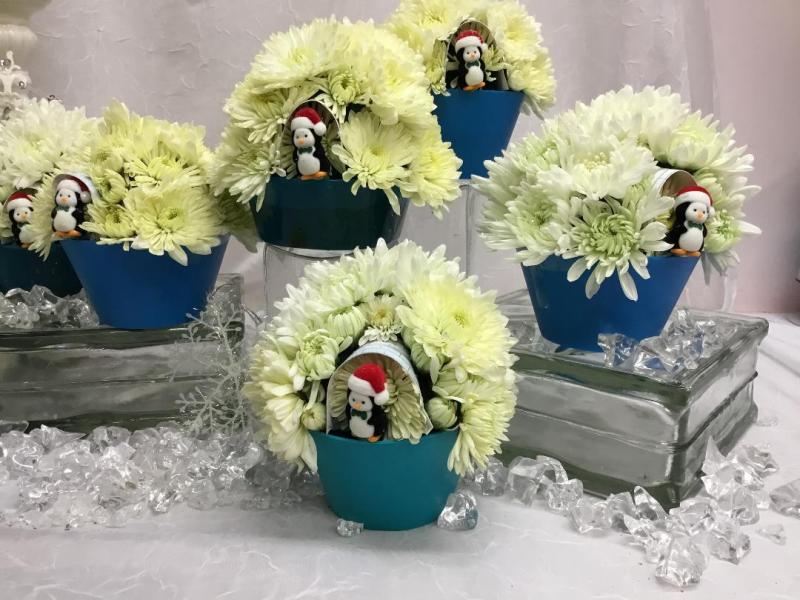 "Baby it's cold outside." Baby Penguins at igloo door.