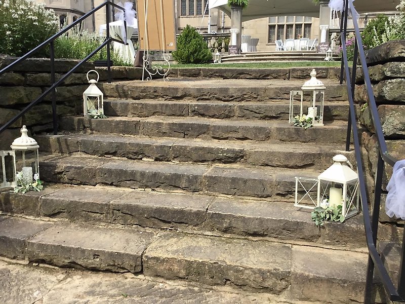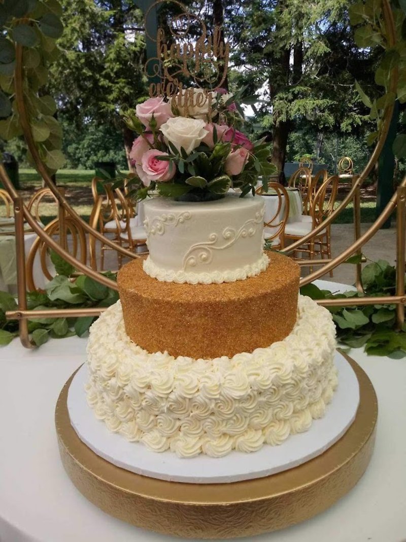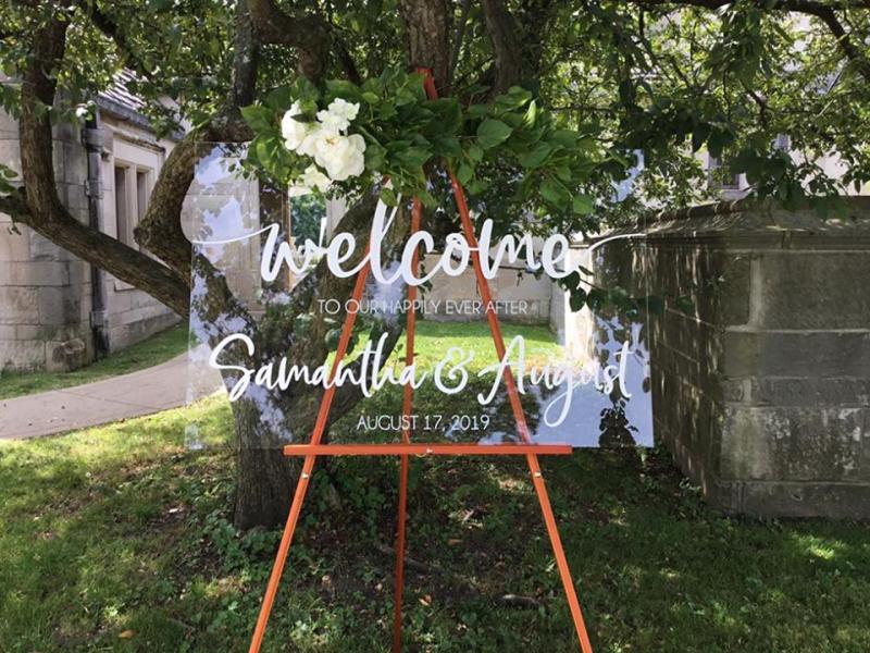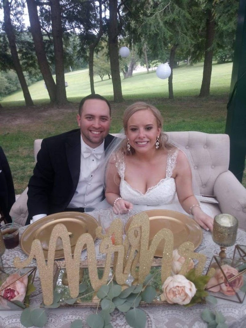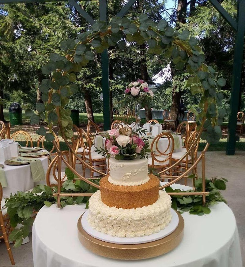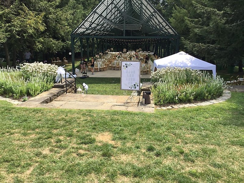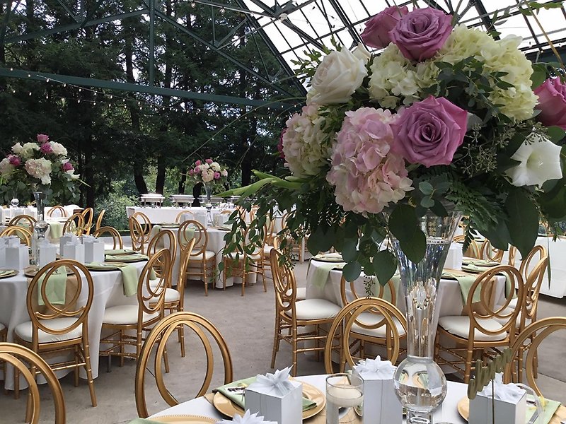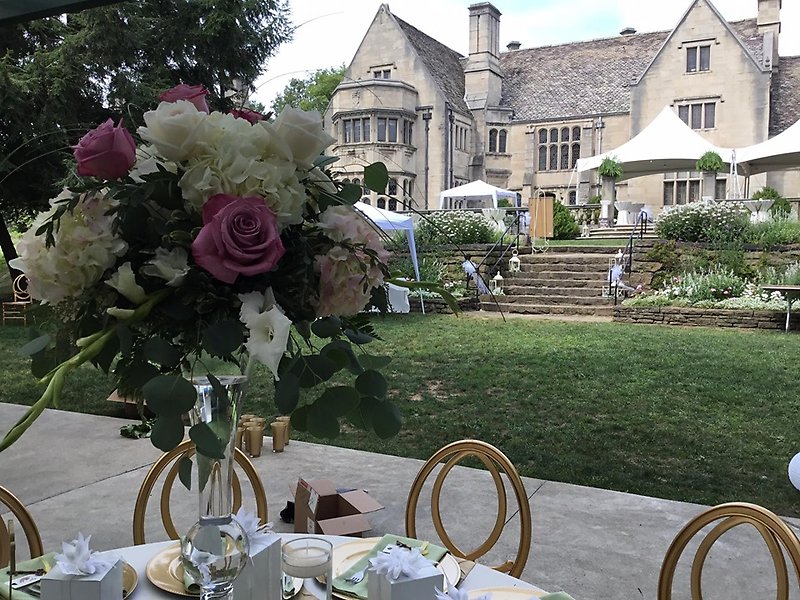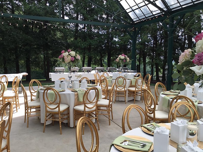 Centerpieces and golden chairs at Hartwood Acres Outdoor Venue